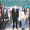 Yunus Emre Enstitüsü tarafından Ziya Selçuk'a çiçek ve hediye verildi. Selçuk, öğrencilerle fotoğraf da çekildi.
