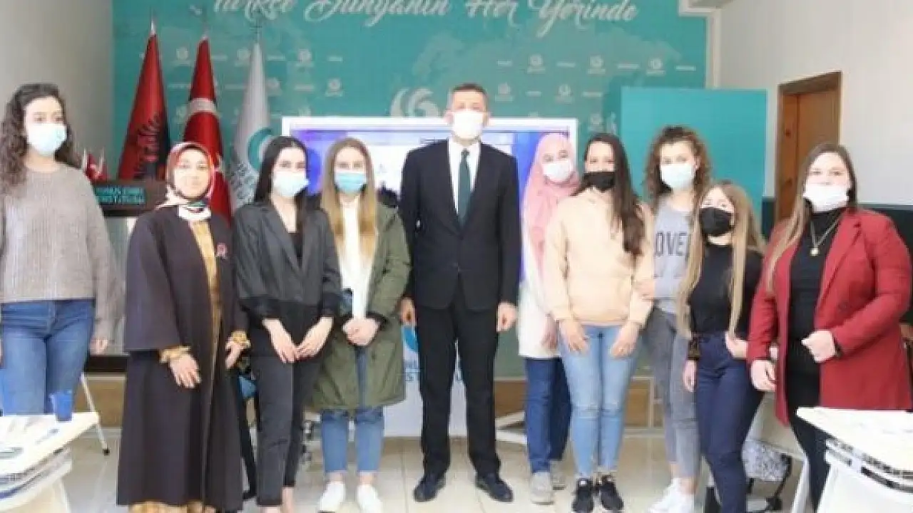 Temasları kapsamında Tiran Yunus Emre Enstitüsü'nü de ziyaret eden Bakan Selçuk, yüz yüze Türkçe eğitim gören öğrencilerle buluştu.