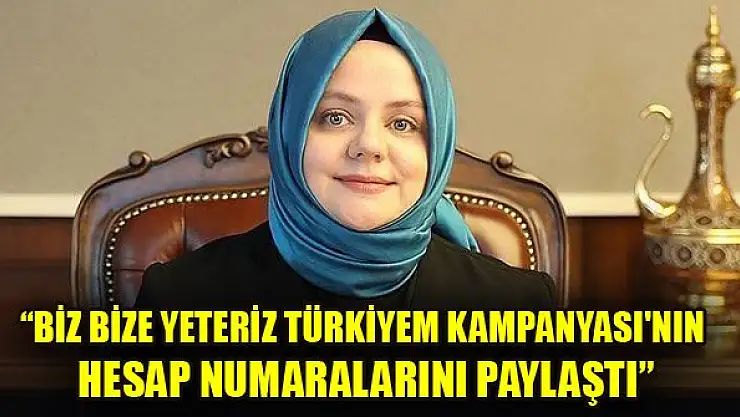 Aile, Çalışma ve Sosyal Hizmetler Bakanı Selçuk, Cumhurbaşkanı Erdoğan'ın duyurduğu 'Biz Bize Yeteriz Türkiyem Kampanyası'nın hesap numaralarını paylaştı.