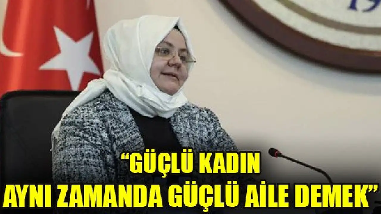 Aile, Çalışma ve Sosyal Hizmetler Bakanı Zehra Zümrüt Selçuk, 'Güçlü kadın aynı zamanda güçlü aile demek. Kadınlarımız ne kadar özgüvenli ne kadar güçlü olursa inşallah o derece de ailelerimiz, çocuklarımız ve ülkemiz de güçlü olacak' dedi.