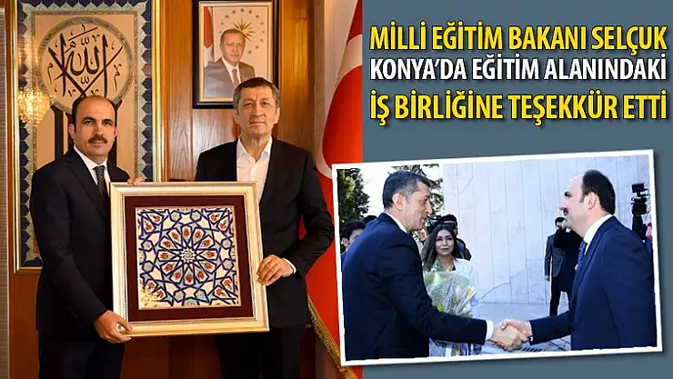 Konya Büyükşehir Belediye Başkanı Uğur İbrahim Altay'ı ziyaret eden Milli Eğitim Bakanı Ziya Selçuk, başta Büyükşehir Belediyesi olmak üzere ilçe belediyelerinin bütün eğitim sistemiyle ve okullarla doğrudan irtibatlı olmasının ve her türlü ihtiyaca destek vermesinin kendilerine büyük yardımı olduğunu söyledi.