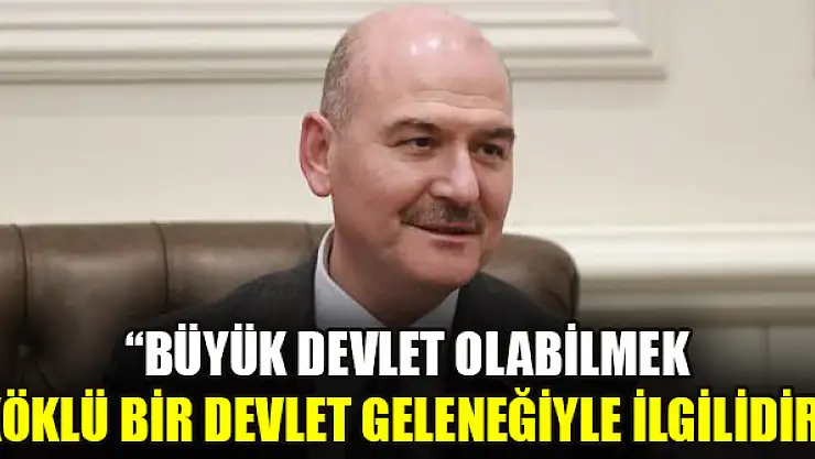 İçişleri Bakanı Süleyman Soylu, 'Büyük devlet olabilmek sadece para ve silahla ilgili değil esas itibarıyla bir yönetim kabiliyetiyle ve köklü bir devlet geleneğiyle ilgilidir' dedi.