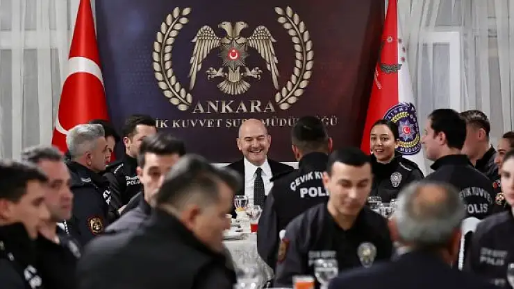 İÇİŞLERİ Bakanı Süleyman Soylu, Çevik Kuvvet Şube Müdürlüğü'nde görevli polislerle iftar yaptı.