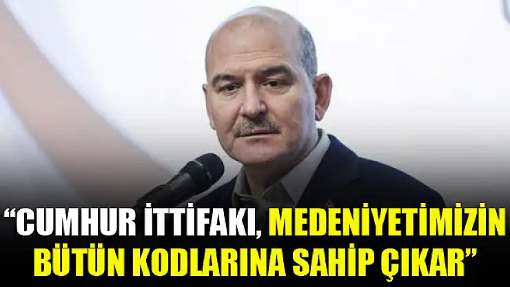 İçişleri Bakanı Süleyman Soylu, 'Cumhur İttifakı sadece bir değerler ittifakı değil. Aynı zamanda medeniyetimizin bütün kodlarına sahip çıkan bir anlayışın ta kendisidir.' dedi.