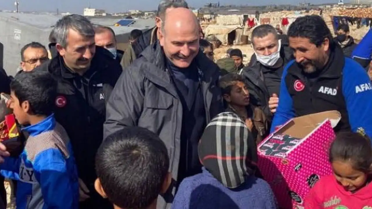 Burada AFAD tarafından hazırlanan yardım kolilerinin dağıtımına eşlik eden Soylu, çocuklara da oyuncak ve çikolata verdi.