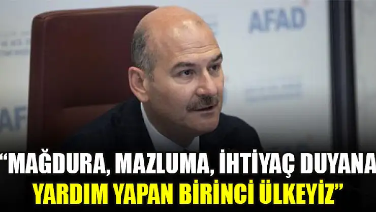 İçişleri Bakanı Süleyman Soylu, 'Bizden daha zengin ülkeler varken biz, dünyada son 4 yılda mağdura, mazluma, ihtiyaç duyana yardım yapan birinci ülkeyiz' dedi.