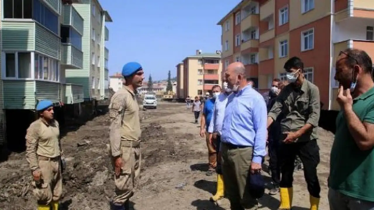 İçişleri Bakanı Süleyman Soylu, sel felaketinin yaşandığı Kastamonu'nun Bozkurt ilçesinde incelemelerine devam etti.