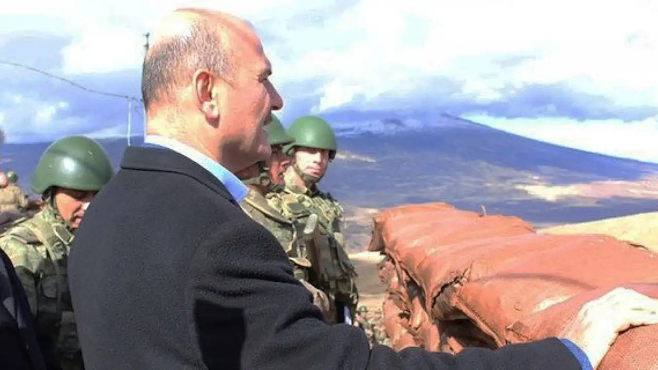 İçişleri Bakanı Süleyman Soylu, Türkiye-İran sınır karakollarını ziyaret ederek yapımı devam eden sınır duvarını havadan denetledi.