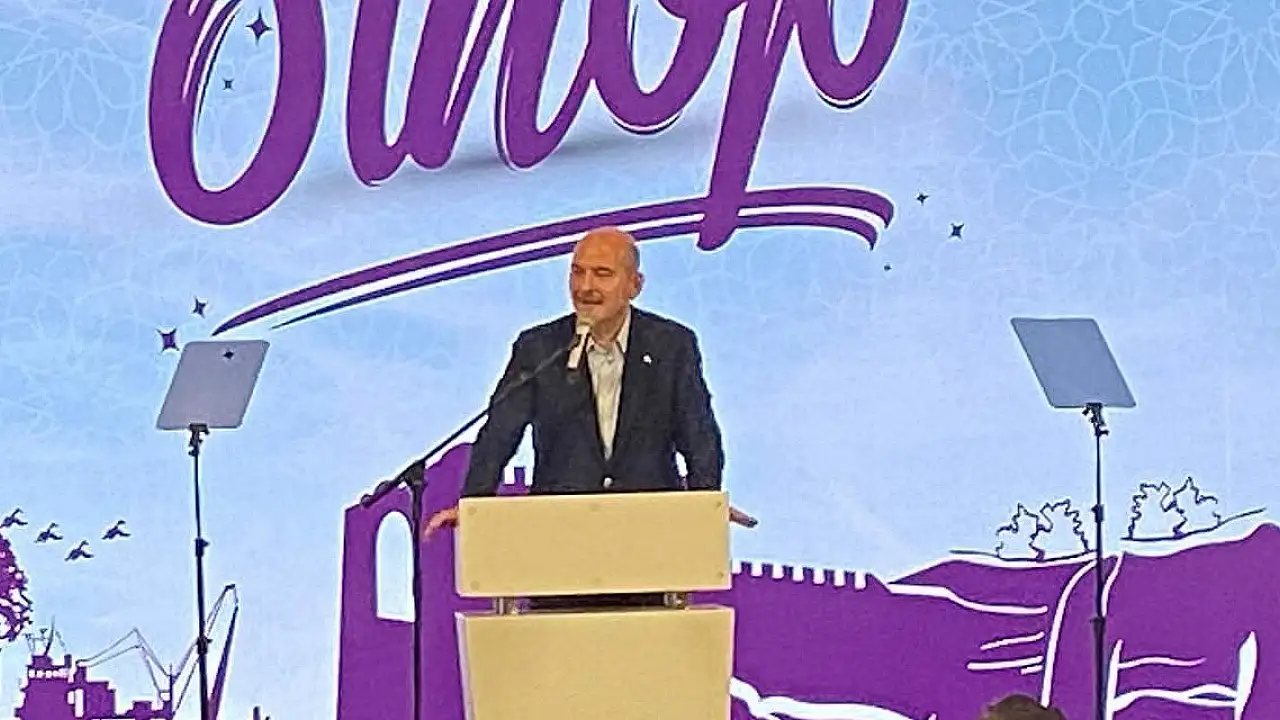 Konuşmasına yeni petrol rezervi müjdesiyle başlayan Bakan Soylu, "Bugün bu salonda birlikte olduğumuz kıymetli Sinoplu hemşerilerim, öncelikle bu güzel akşamı bizlerle paylaştığınız için her birinize ayrı ayrı şükranlarımı sunuyorum hepinizi hürmetle saygıyla ve muhabbetle selamlıyorum. Size bir müjde ile başlayayım. Bu sabahın 6'sında Şırnak Valimiz aradılar. Esma Çevik 1 bölgesinden ve kuyularından petrol çıkmıştı. 100.000 varille yine kuyudan petrol çıktı. Şimdi bu sabah itibari ile büyük bir heyecanla ve müjdeyle beni aradı. Dedi ki siz uyumazsınız biliyorum Esma Çevik 2 kuyusunu uzun zamandır vuruyorlardı, bu sabah ondan da müjdeli haber geldi." dedi.