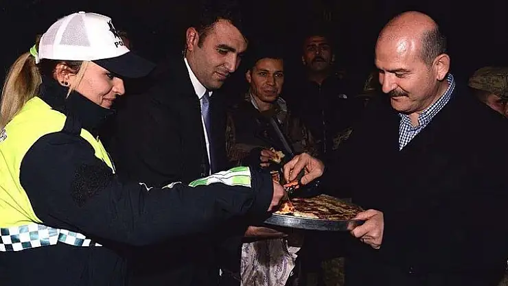 Bakan Soylu'dan nöbetteki polislere börek ikramı