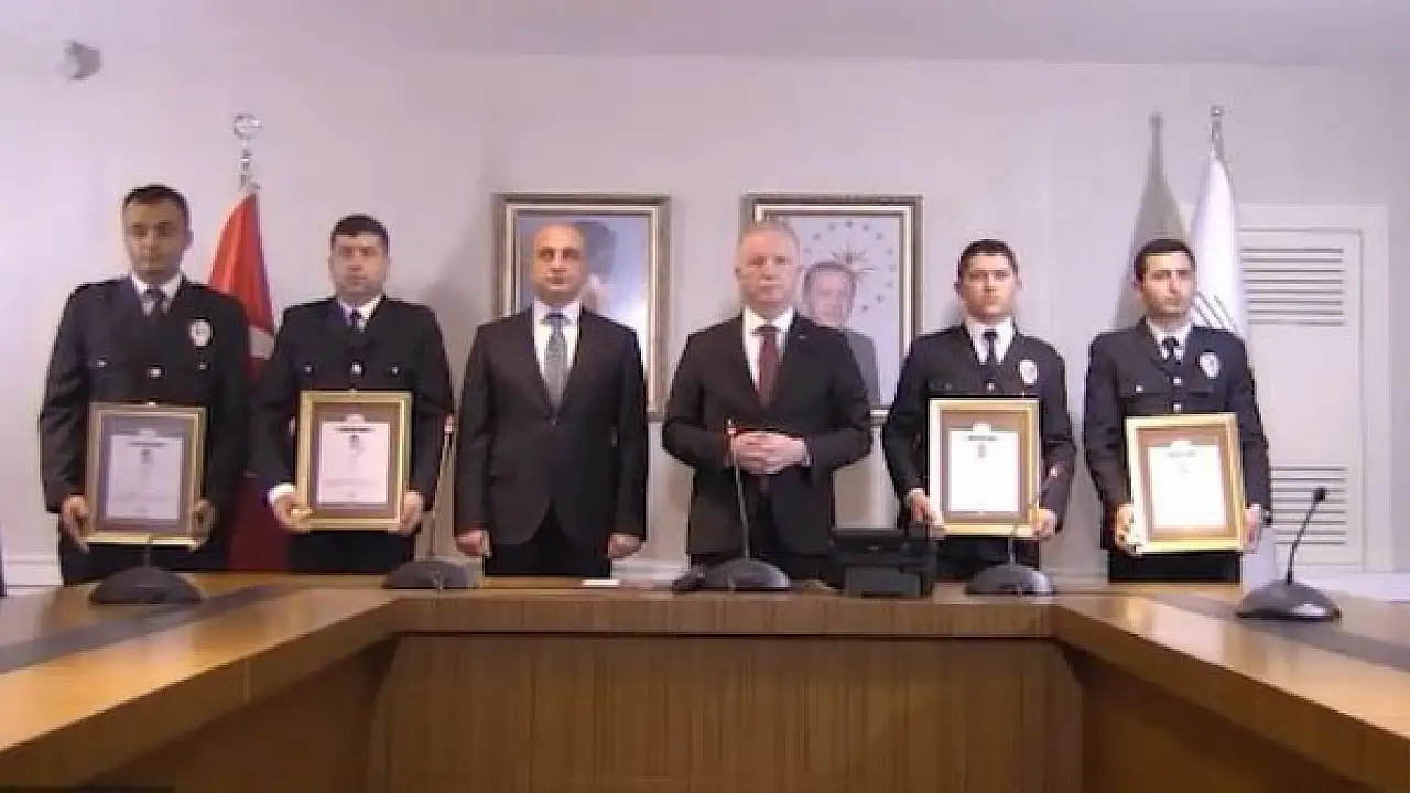 Bakan Soylu, olaya hızlı müdahale ederek saldırganı etkisiz hale getiren polis memurlarını başarı belgesi ve altınla ödüllendirdi.