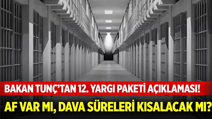 Adalet Bakanı Yılmaz Tunç, hazırlıkları tamamlanan 12. Yargı Paketi’nin detaylarını paylaştı. Yeni paketin bir infaz düzenlemesi veya af içermediğini belirten Tunç; uzun süren davaların çabuk sonuçlandırılması, arabuluculuğun etkinleşmesi ve noter yardımcılığı gibi devrim niteliğinde adımların atılacağını duyurdu.