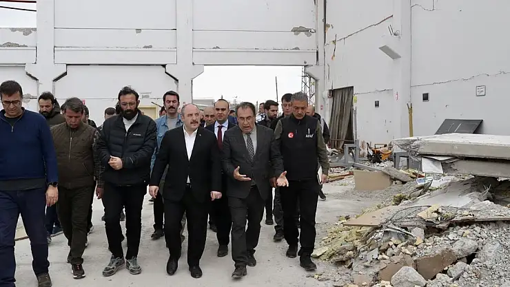Sanayi ve Teknoloji Bakanı Mustafa Varank, Türkiye'yi sarsan depremlerin merkez üssü olan Kahramanmaraş'ta sanayi siteleri ve organize sanayi bölgelerinde (OSB) incelemelerde bulundu. Sanayiciler ve esnafla bir araya gelen Bakan Varank, depremden etkilenen illerde tekrar üretimin ayağa kaldırılabilmesi için yapılmakta olanları ve yapılacakları anlattı, iş insanlarının görüş ve önerilerini dinledi.