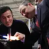 Varank, burada çalışanlarla bir süre sohbet ettikten sonra kaynak makinesi kullandı.