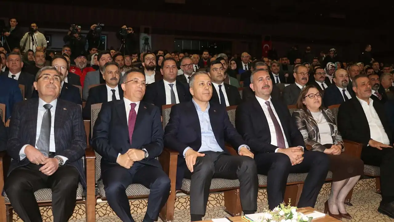 Çeşitli temaslarda bulunmak üzere Gaziantep'e gelen İçişleri Bakanı Ali Yerlikaya, "Türkiye Huzuru Gaziantep'in Huzuru" konulu toplantıya katıldı. Şehitkamil Kongre Merkezi'nde düzenlenen törene; Bakan Yerlikaya'nın yanı sıra, Gaziantep Valisi Kemal Çeber, Büyükşehir Belediye Başkanı Fatma Şahin, milletvekilleri, emniyet ve jandarma mensupları, STK temsilcileri ile vatandaşlar katıldı. Programda konuşan Bakan Yerlikaya, göreve geldiği tarihten bu yana, terörden narkotiğe, asayiş olaylarından göçmen kaçakçılığına, organize suç örgütlerinden uyuşturucu operasyonlarına kadar detaylı bir sunum gerçekleştirdi.
