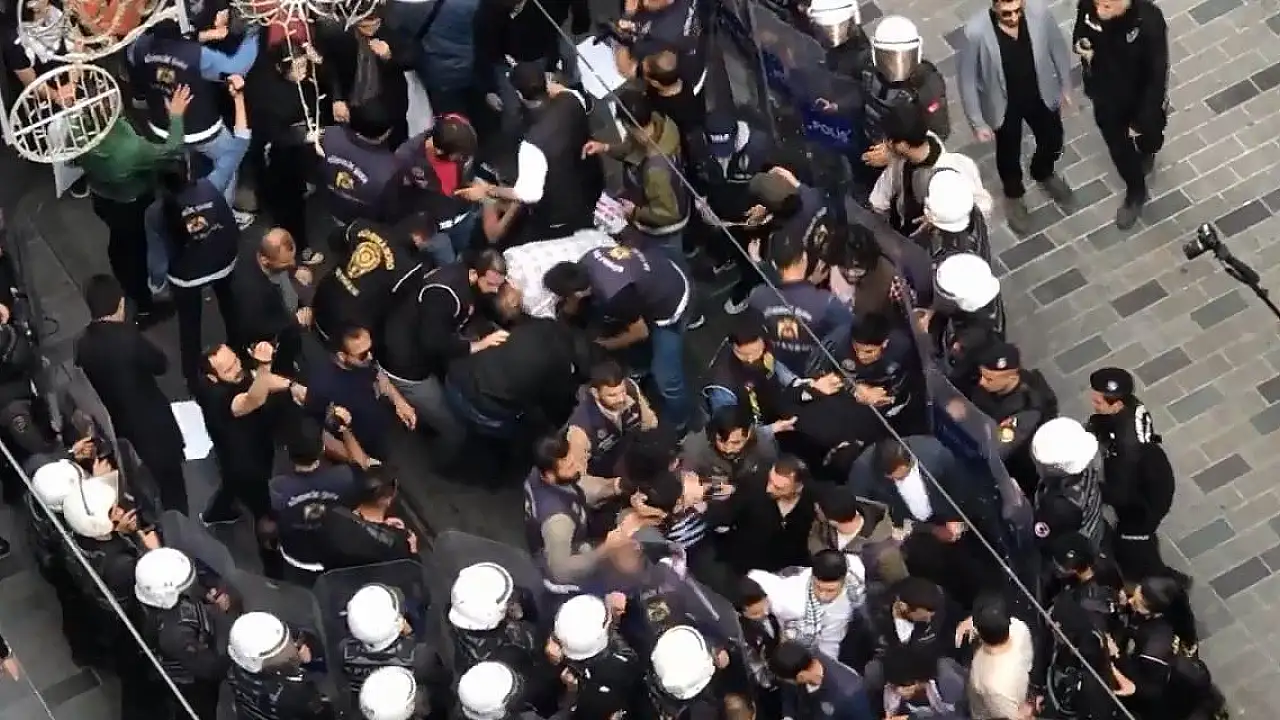 Bakan Yerlikaya, paylaşımında, "Bugün saat 15.30’da İstanbul Beyoğlu’nda Filistinli kardeşlerimize zulmeden, soykırıma varan katliamlarda bulunan İsrail’le ilgili protesto gösterisi yapılmıştır. Protesto gösterisi bittikten sonra göstericiler dağılmış ancak bir grup tüm uyarılara rağmen dağılmamış; devlet büyüklerine hakaret ederek güvenlik güçlerine mukavemet etmiştir. Olayla ilgili 43 şahıs yakalanmış, 38’i kimlik kontrolü yapılarak serbest bırakılmış, 5 şahsın ise ifadeleri alınarak adli işlem yapılmıştır. Ayrıca olay ile ilgili 2 emniyet görevlisi açığa alınmış ve derhal mülkiye müfettişi görevlendirilmiştir. Konuyla ilgili gelişmeler kamuoyu ile paylaşılacaktır" ifadelerine yer verdi.