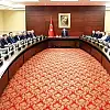 61. Hükümetin son Bakanlar Kurulu toplantısına kabine üyelerinin Başbakan Erdoğan'a yönelik duygusal vedaları damgasını vurdu. Başbakan Erdoğan'ın başbakan olarak son kez başkanlık ettiği toplantıda, bakanlar Erdoğan'a 'Yokluğunuzu çok derinden hissedeceğiz' diyerek duygu yüklü konuşmalar yaptı. Bazı bakanların duygularını ifade etmekte zorlandıkları öğrenilirken, Erdoğan'ın da çalışma arkadaşlarına tek tek teşekkür ederek vedalaştığı bildirildi.