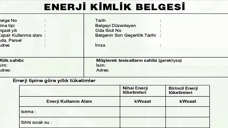 Çevre, Şehircilik ve İklim Değişikliği Bakanlığından alınan bilgiye göre, Enerji Kimlik Belgesi, binanın enerji ihtiyacı ve enerji tüketim sınıflandırması, yalıtım özellikleri ve ısıtma veya soğutma sistemlerinin verimiyle ilgili bilgileri içeriyor.