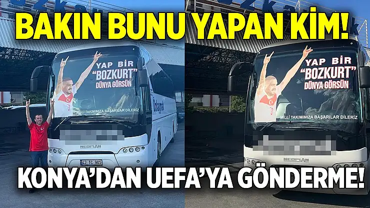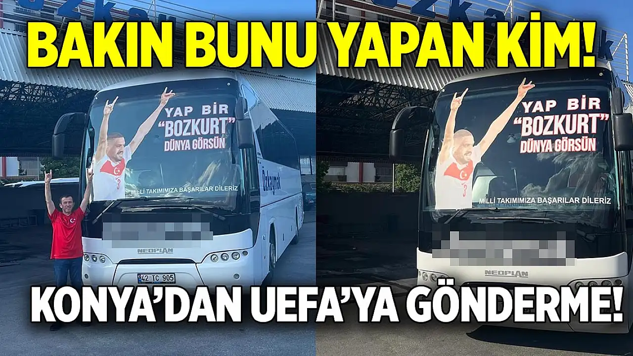 A Milli Takımımızın yıldız oyuncusu Merih Demiral, Avusturya maçında attığı ikinci golden sonra bozkurt işareti yapmış ve UEFA bu harekete tepki göstermişti. Avrupa'nın gündemine oturan hareketin ardından UEFA Merih'e iki maç men cezası verdi. Cezanın ardından ülkemizin çeşitli yerlerinden tepkiler gelmeye devam ediyor. Son olarak Konya'nın önemli turizm ve seyahat firmalarından Özkaymak, Merih'e verilen cezayı otobüse yazılan yazıyla gösterdi. Firmanın yönetim kurulu üyesi Özkan Özkaymak, bir otobüsün önüne yazdırdığı "Yap bir Bozkurt dünya görsün" yazısıyla tepki gösterdi. Özkan Özkaymak, otobüs önünde verdiği pozları da sosyal medyasından paylaştı.