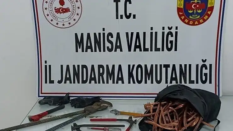 Manisa Celal Bayar Üniversitesi Muradiye Yerleşkesi içerisinden, piyasa değeri yaklaşık 7 bin lira olan 100 metre uzunluğunda bakır kablo çalan iki hırsız jandarma tarafından yakalandı.