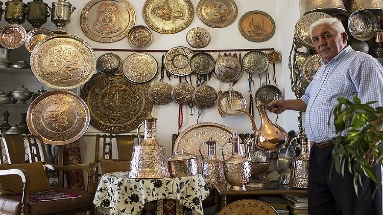 Çıraklıktan ustalığa ömrünü bakır işleme sanatına adayan 65 yaşındaki İhsan Geredeli, 48 yıldır çekiç darbeleriyle bakırı süsleyip müşterilerinin beğenisine sunuyor.