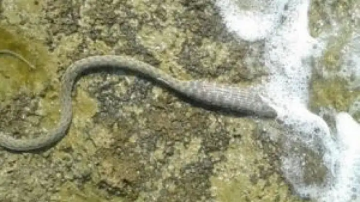 Yumurtalık İlçesi'nin sahil kesimindeki DSİ Eğitim ve Dinlenme Tesisi'nde 10 yıldır cankurtaran olarak görev yapan Mümtaz Karaçay, tatilcilerin denize girdiği sırada sahilde gezerken yaklaşık 1,5 metre uzunluğunda bir yılanın kayalıkların arasından çıkarak deniz kenarında yüzen balığı yutmaya çalıştığını fark etti.