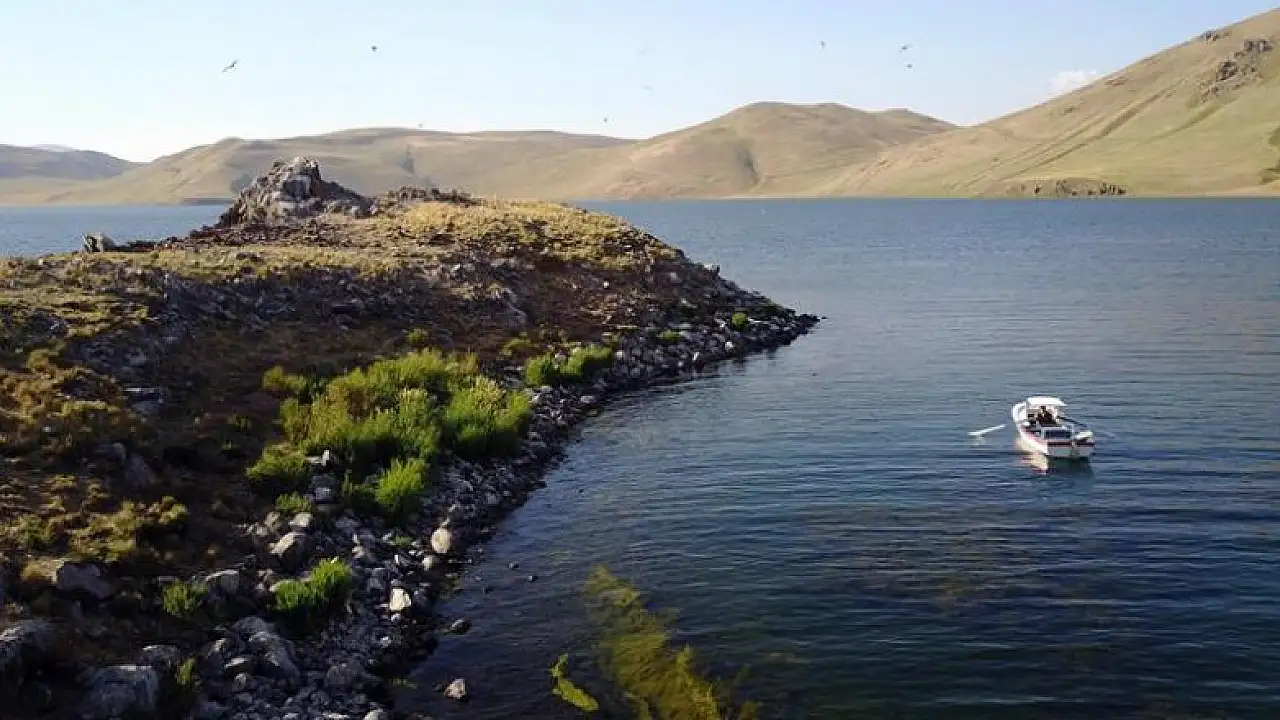 Türkiye'nin en yüksek rakımlı gölü olan Balık Gölü'nde bulunan eski dönemlere ait yerleşim kalıntıları ve kuşların konakladığı iki adanın 'drone' ile havadan çekilen görüntüleri büyülüyor.