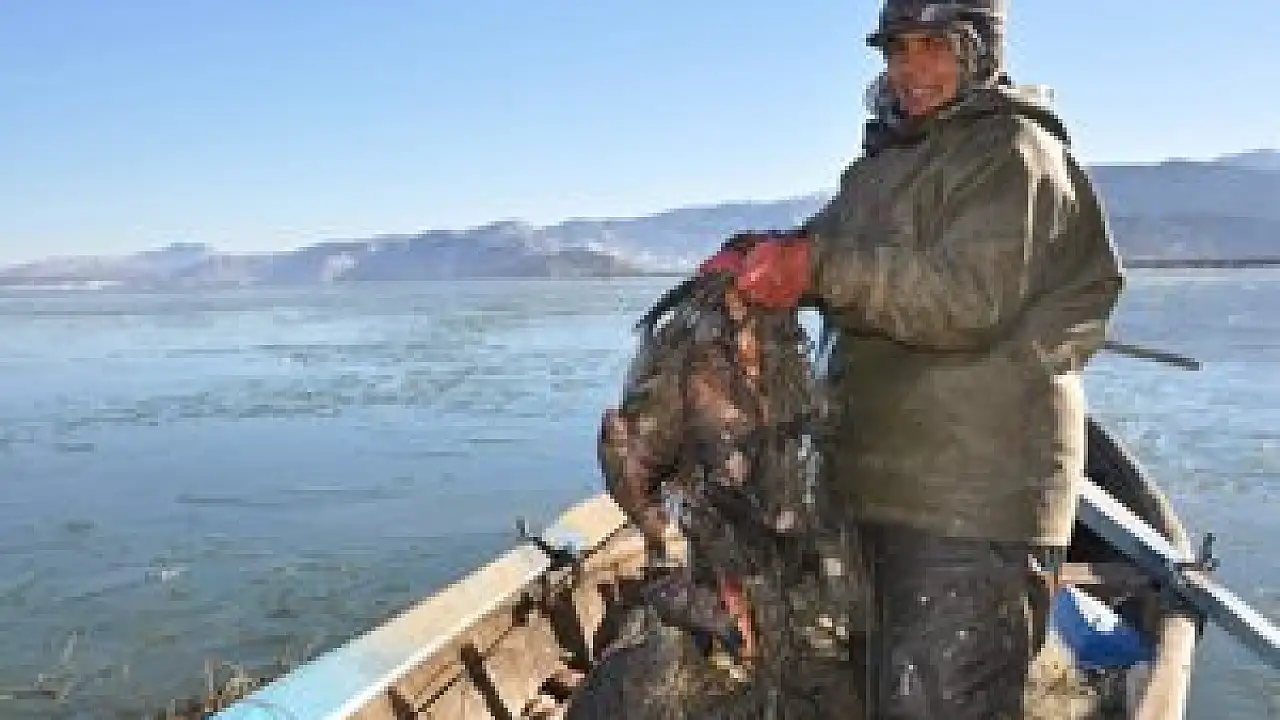 Özellikle gece saatlerinde eksi 20 dereceyi bulan soğuk hava nedeni ile Suğla Gölü yüzeyi buz tuttu. Gölden tuttukları balık ile geçimini sağlayan aileler ise tehlikelide olsa gölde buzları kırarak tekneleri ile balık tutmaya çalışıyor.