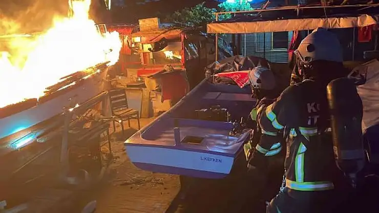 Kocaeli'nin İzmit ilçesinde alev alev yanan balıkçı teknesi, itfaiye ekipleri tarafından söndürüldü.