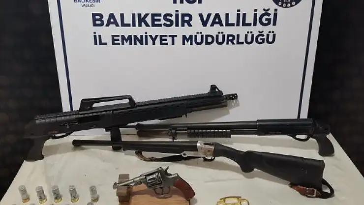 Balıkesir İl Emniyet Müdürlüğü ekiplerinin genel güvenliği ve asayişi sağlamak amacıyla İl Merkezinde, Ayvalık, Bigadiç, Bandırma, Burhaniye, Edremit, Erdek, Gömeç, Gönen, Savaştepe, Sındırgı ve Susurluk ilçelerinde son 1 haftada yapılan çalışmalarda çeşitli suçlardan aranan 118 şahsı gözaltına alırken, adli makamlara sevk edilen 37 şahıs tutuklandı. Yapılan aramalarda; 18 adet ruhsatsız tabanca ve bu tabancalara ait 299 adet fişek, 15 adet ruhsatsız Tüfek ve bu tüfeklere ait 178 adet kartuş, 8 adet Kurusıkı tabanca ve bu tabancalara ait 16 adet fişek ele geçirildi.