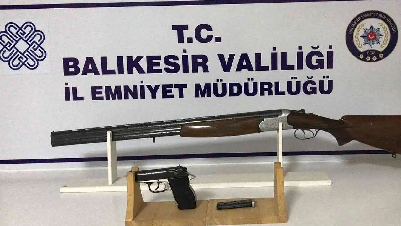 Balıkesir İl Emniyet Müdürlüğü Asayiş Şube Müdürlüğü Ekipleri, merkez ve ilçelerde yaptığı uygulamalarda, çeşitli suçlardan aranan 26 şahıs gözaltına alırken, 8 adet ruhsatsız tabanca ve tabancalara ait 33 adet fişek, 3 adet ruhsatsız tüfek, 1 adet kurusıkı tabanca ve tabancaya ait 17 adet fişek ele geçirdi.