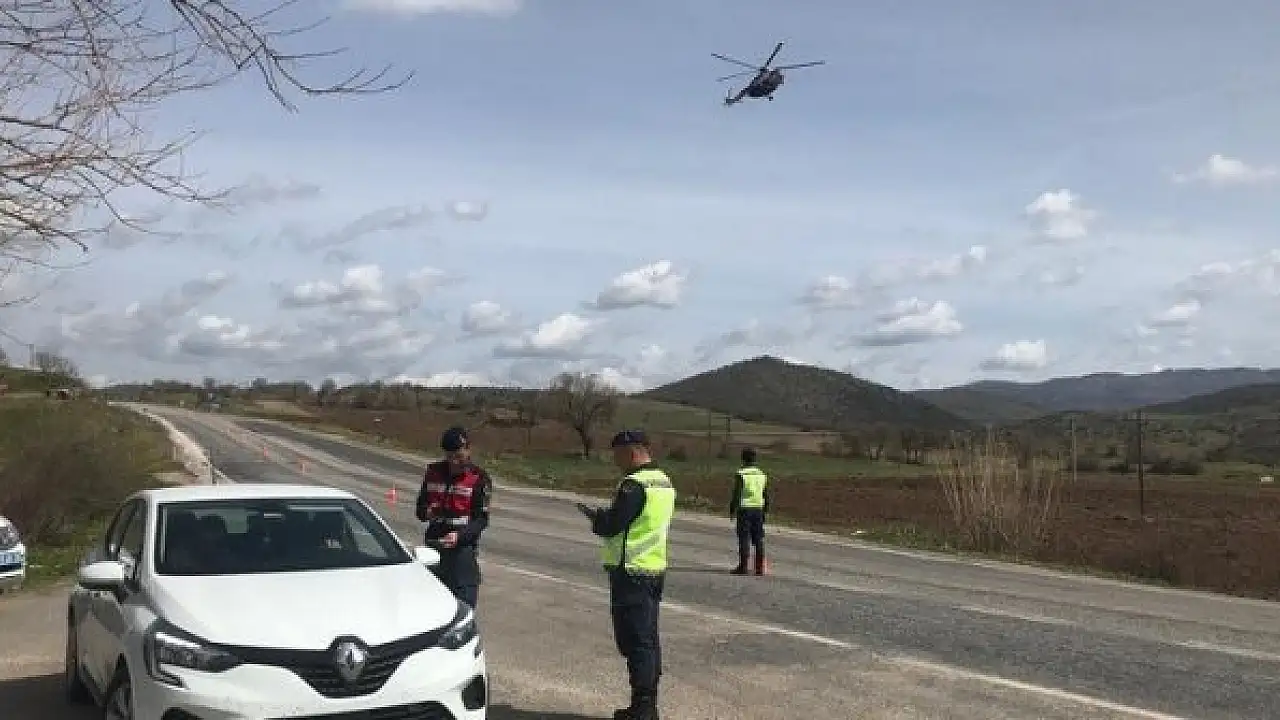 Balıkesir'de jandarma trafik timleri araç yoğunluğu yaşanan anayollarda trafiği helikopter ile havadan denetledi.