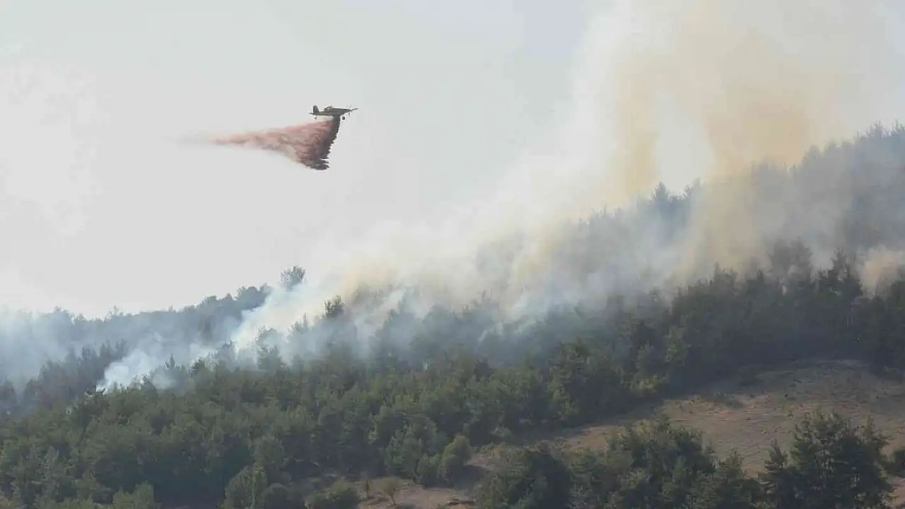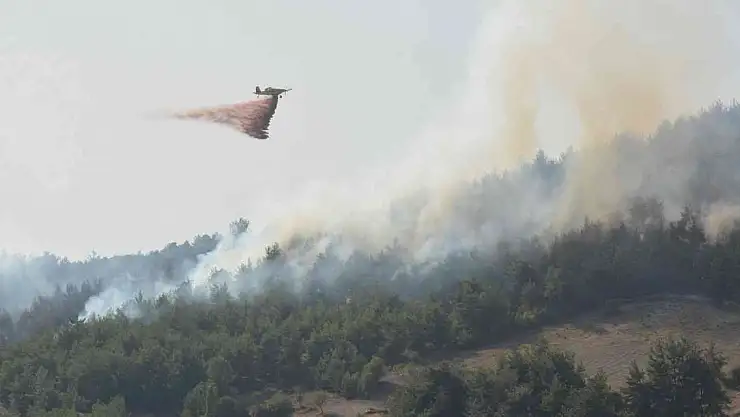 Balıkesir'de yangına havadan ve karadan müdahale sürüyor