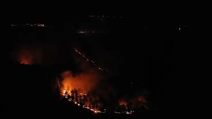 Dün akşam saatlerinde çıkan yangına, 2 uçak, 5 helikopter, 35 arazöz, 8 su ikmal aracı, 4 kara ekibi, 5 dozer ve 220 personelle müdahale edilmiş, havanın kararmasıyla da gece görüşlü helikopter devreye girerek söndürme çalışmalarına destek vermişti.