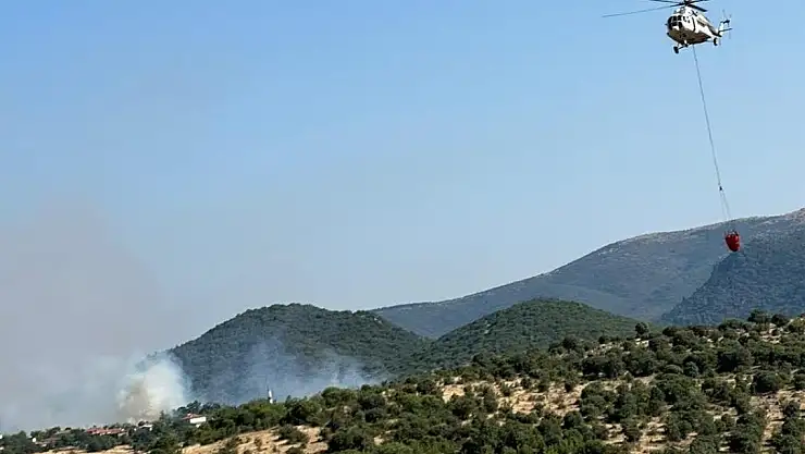 Ekipler, yerleşim alanı yakınında etkili olan yangını söndürmek için havadan ve karadan müdahalesini sürdürüyor.