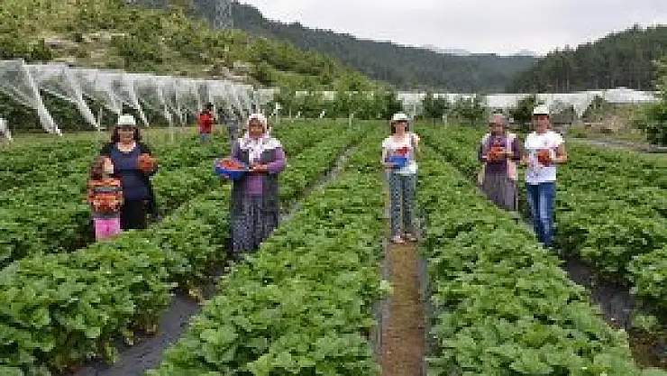 Kahramanmaraş'ta süs diye aldığı fidelerden yola çıkarak çilek bahçesi kuran kadın girişimci, bu yıl 5 tonürün bekliyor.