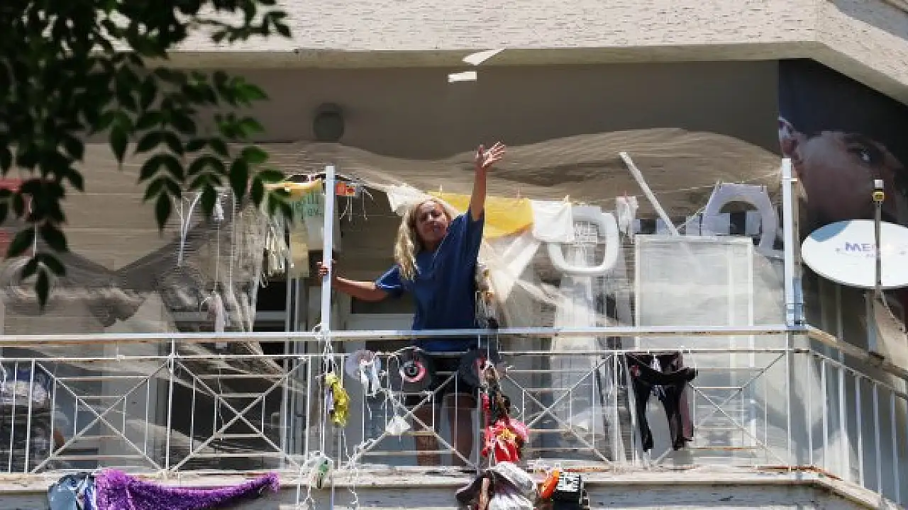ANTALYA'da, Sevilay T. (45), yaşadığı evin balkonundan aşağıya tabak, seramik ve taş attı. Küfür eden kadın yakalaşık 2,5 saat sonra eve çilingir yardımıyla giren polis tarafından etkisiz hale getirildi. Sokakta olayı izleyenlerin bazıları bu anları cep telefonlarıyla görüntüleyip, canlı yayın yaptı.