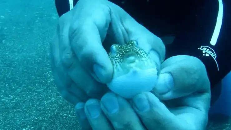 AKDENİZ ve Ege'de balıkçıların korkulu rüyası balon balığı, deniz suyunun ısınması ile yeniden kıyılara yaklaştı. Akdeniz Üniversitesi'nden Prof. Dr. Mehmet Gökoğlu, dipteki besinleri paletle havalandıran dalgıçları takip eden bir balon balığı türünü görüntüledi. Prof. Dr. Gökoğlu, avuçlarına alıp sevdiği türe "Şirinler" adını verdi.