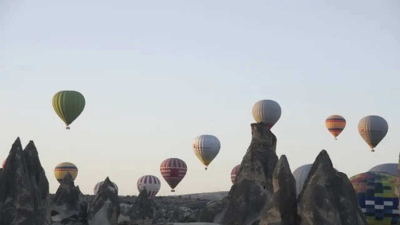 Türk bayraklarının asılı olduğu balonlar, Göreme'den güneşin doğuşuyla Kapadokya semalarına yükseldi. Uçuşlar, yaklaşık 1 saat sürdü.