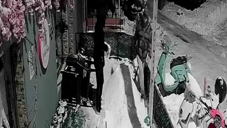 Gece saatlerinde caddeden geçen iki genç, dükkan önündeki kardan adamı fark etti. Güvenlik kamerasına yansıyan görüntülerde; gençlerden birinin kardan adamın yanından geçerken aniden duraksadığı ve bir mizansen (kurgu) başlattığı görüldü.