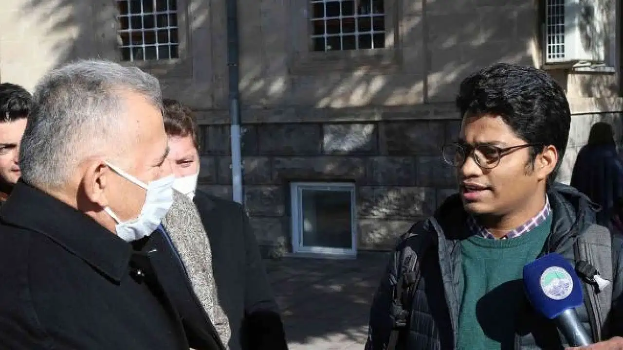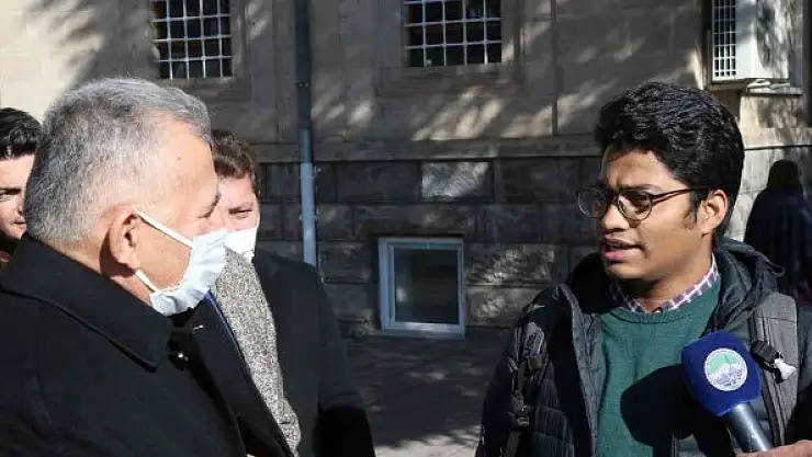 Başkan Büyükkılıç'ı Erciyes Üniversitesi esnaf ziyaretleri sırasında görür görmez yanına gelerek teşekkür etmek istediğini söyleyen Bangladeşli Mosaddek, "Başkanım sizi de bulmuşken teşekkür etmek istedim. Allah razı olsun" dedi.