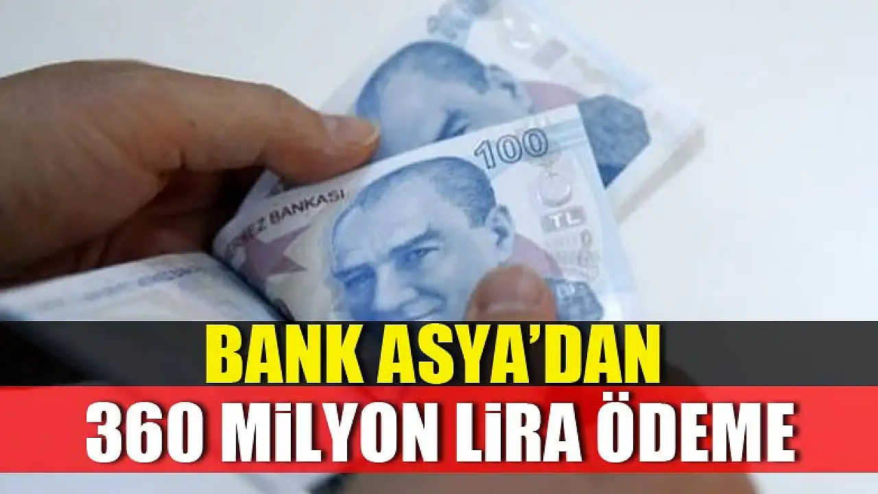 İflasına karar verilen Bank Asya, sigortalı katılım fonu ödemeleri için TMSF'den aktarılan 974,4 milyon liralık kaynağa karşılık Fon'a 360 milyon lira daha ödemede bulundu.