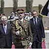 Kırmızı halıda yan yana yürüyen iki lider, ulusal marşların çalınmasının ardından, tören kıtasını selamlayarak ikili görüşmeye geçti.