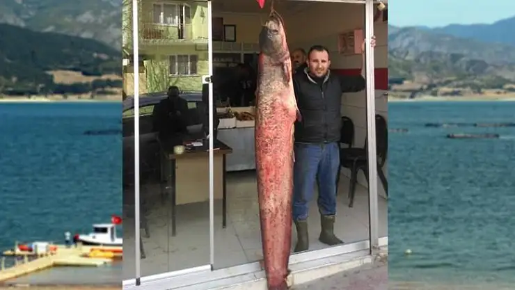 Baraj gölünde 2,10 metre uzunluğunda yayın balığı yakalandı