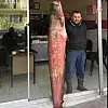 Aybek, uzun süren uğraşlar sonunda balığı kayığına almaya başardı. Balığı kooperatife götüren Aybek, balığın 2,10 metre uzunluğunda 50 kilogram ağırlığında olduğunu belirledi.