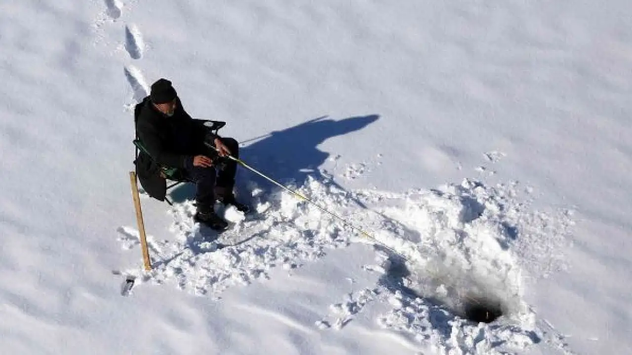 Hava sıcaklıklarının geceleri eksi 25 dereceye kadar düştüğü bölgede yaşayan Sadak köyü sakinleri de baraj gölü üzerindeki buzları kazma yardımı ile kırarak olta yardımıyla balık tutuyor.