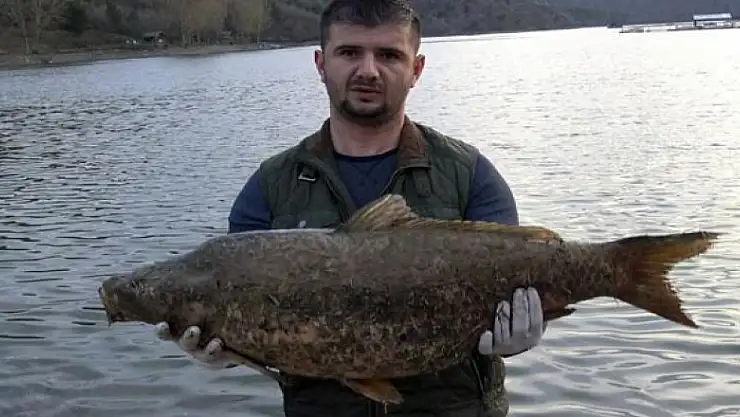 15-20 KİLOGRAMLIK SAZANLARI KIYIYA VURDU