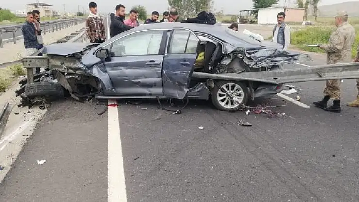 Mardin'in Nusaybin ilçesinde sürücüsünün kontrolünden çıkan otomobil, bariyere çarptı. Bariyerin ok gibi saplandığı otomobildeki 3 kişi yaralandı.
