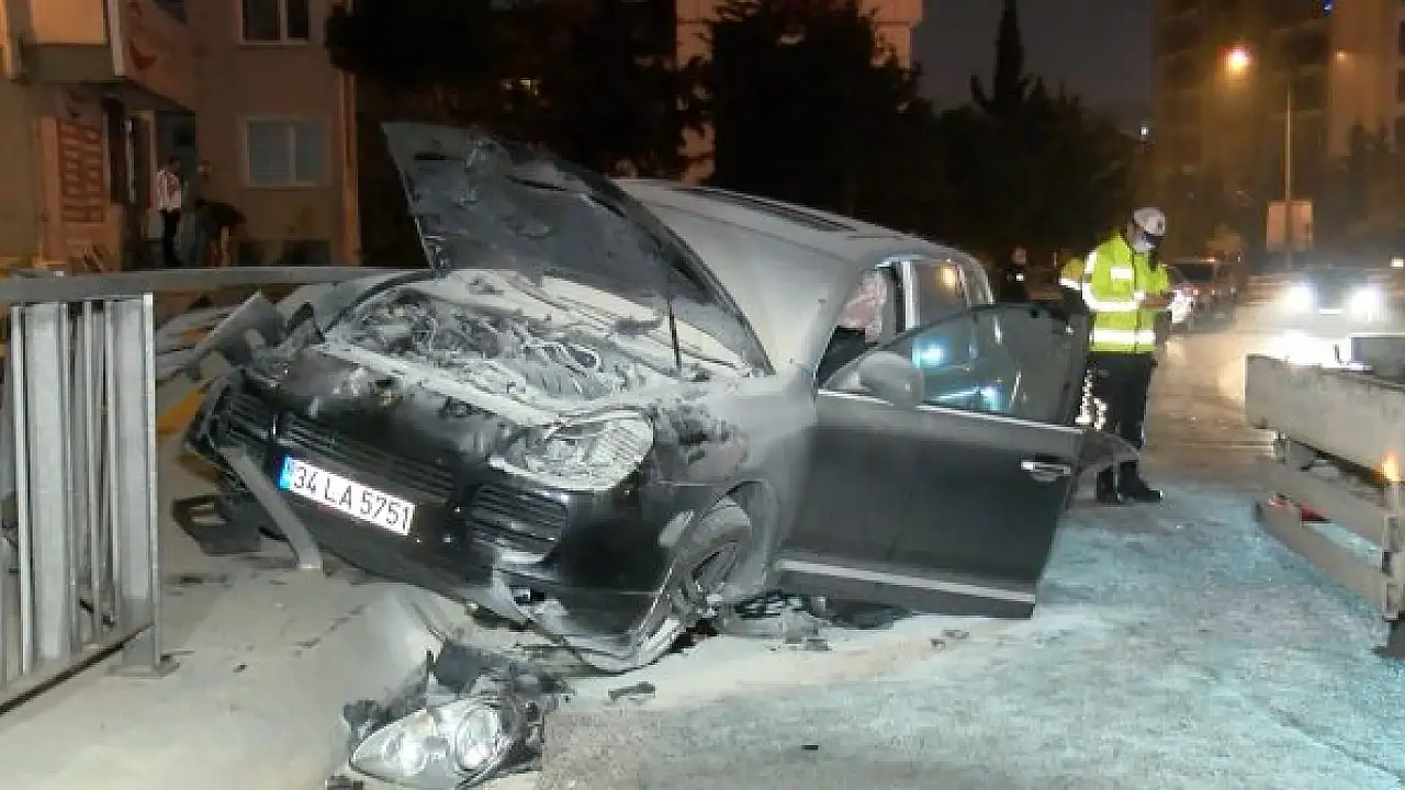 Üsküdar'da aşırı süratli olduğu iddia edilen lüks cip, alkollü sürücünün direksiyon hakimiyetini kaybetmesiyle önce dönel kavşaktaki kaldırıma ardından demir korkuluklara çarptı. Kazadan sonra motor kısmında yangın çıkan cip içerisinde bulunan iki kişi kazayı yara almadan atlattı.