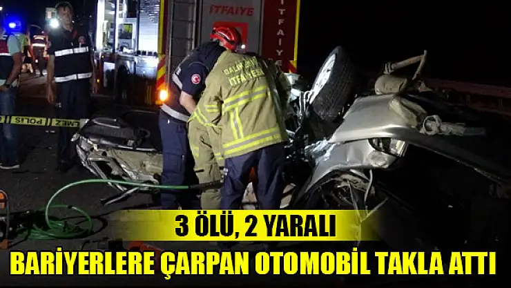 İSTANBUL-İzmir Otoyolu'nun Balıkesir batı gişeleri yakınında bariyerlere çarpan otomobil, takla atarak karşı şeride geçti. Kazada 3 kişi öldü, 2 kişi yaralandı.